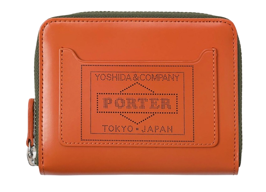 • PORTER YOSHIDA & CO PS LEATHER ZIP WALLET (ORANGE & KHAKI)