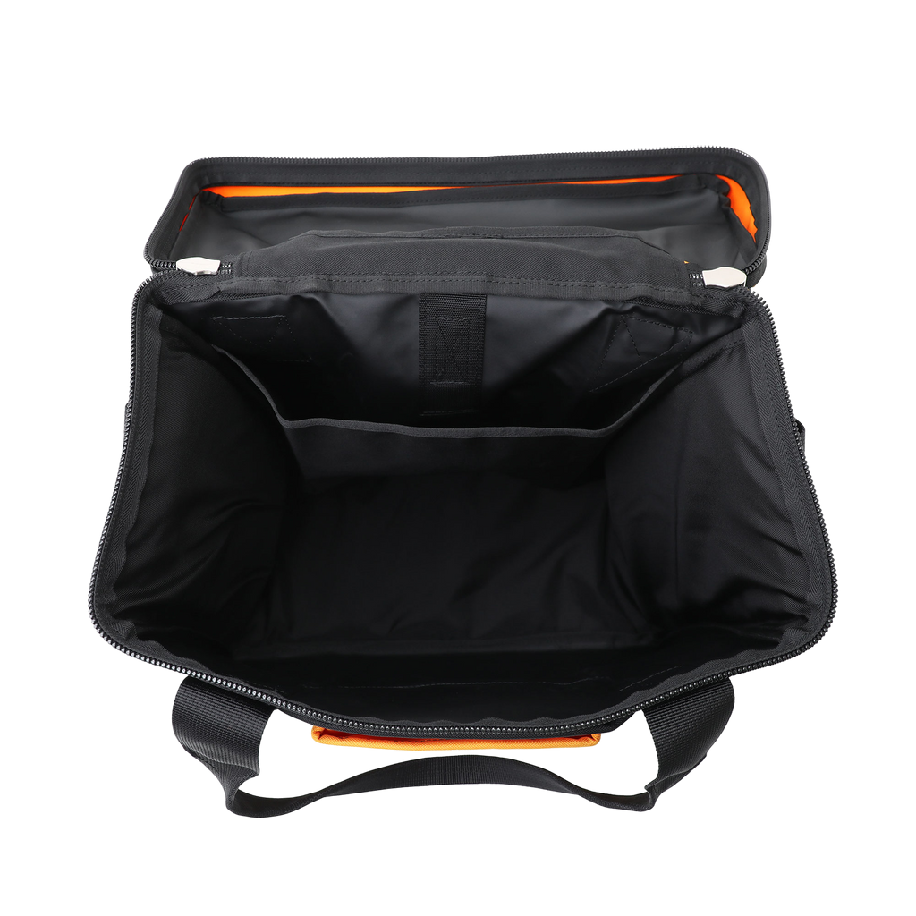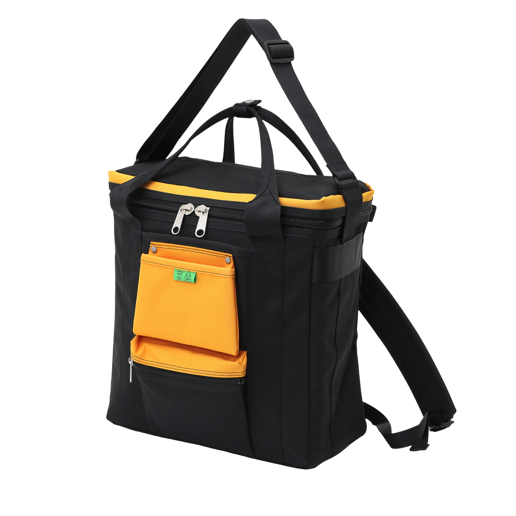 "UNION" is a rucksack series with a distinctive form equipped with multiple functional pockets on the exterior with motifs of workwear and tool waist bags.